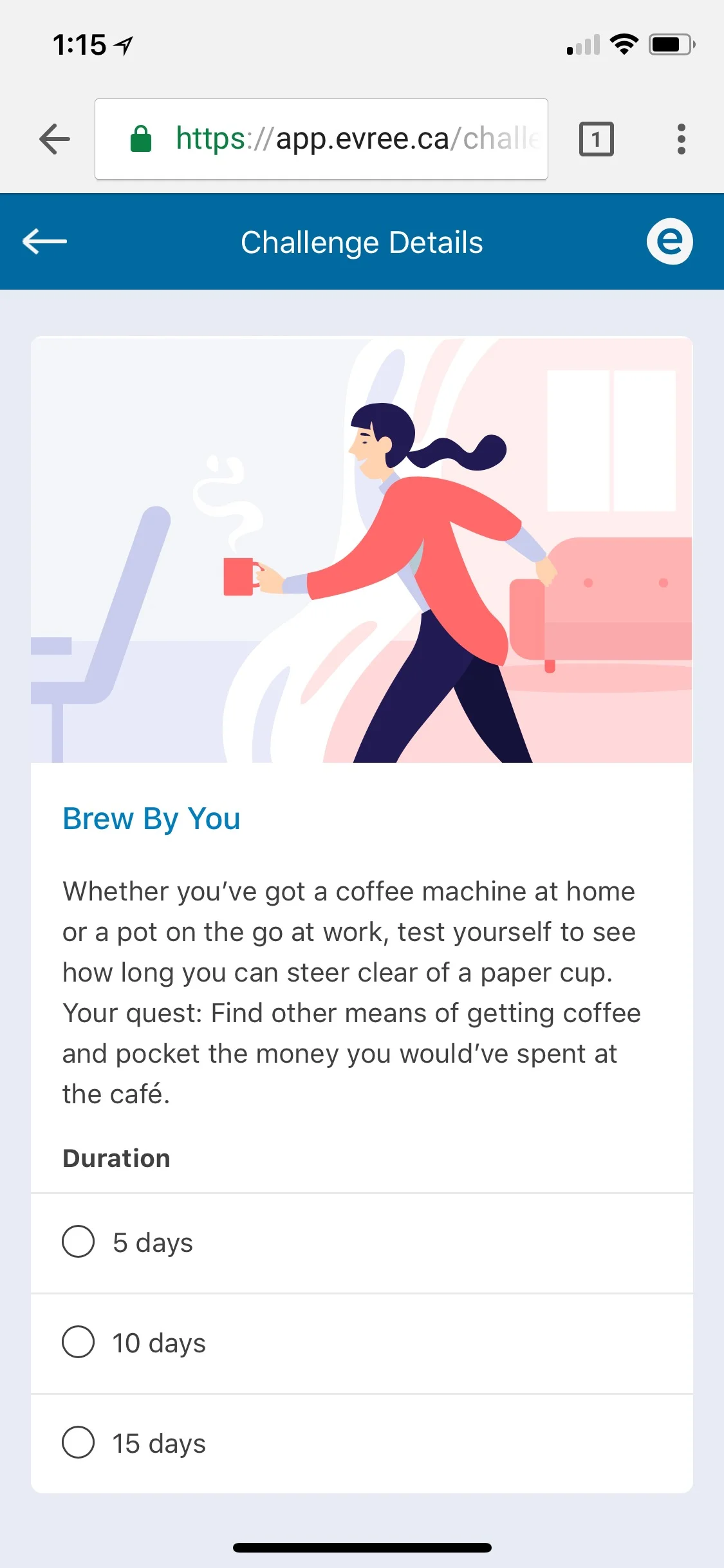 Giving the user the lowdown on what their challenge will involve, and their choice of how long it will last for.